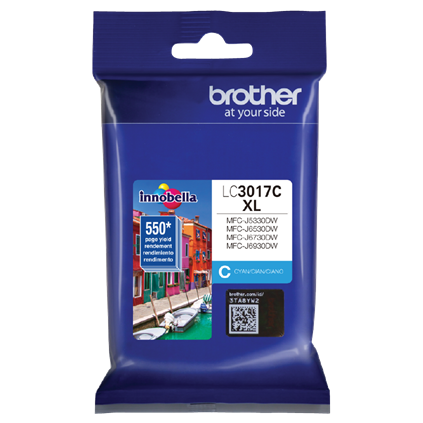 Brother Genuine LC3017C High-yield Cyan Ink Cartridge.