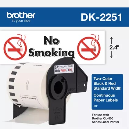 2.4 in x 50 ft (62 mm x 15.2 m) Black/Red on White Continuous Length Paper Tape Continuous length that can be cut to any size you need (based on your Brother QL model) Great for pricing, signage, safety signs, GHS labels, name badges, allergy alert and more For Brother QL-800, QL-810W, and QL-820NWB label printers