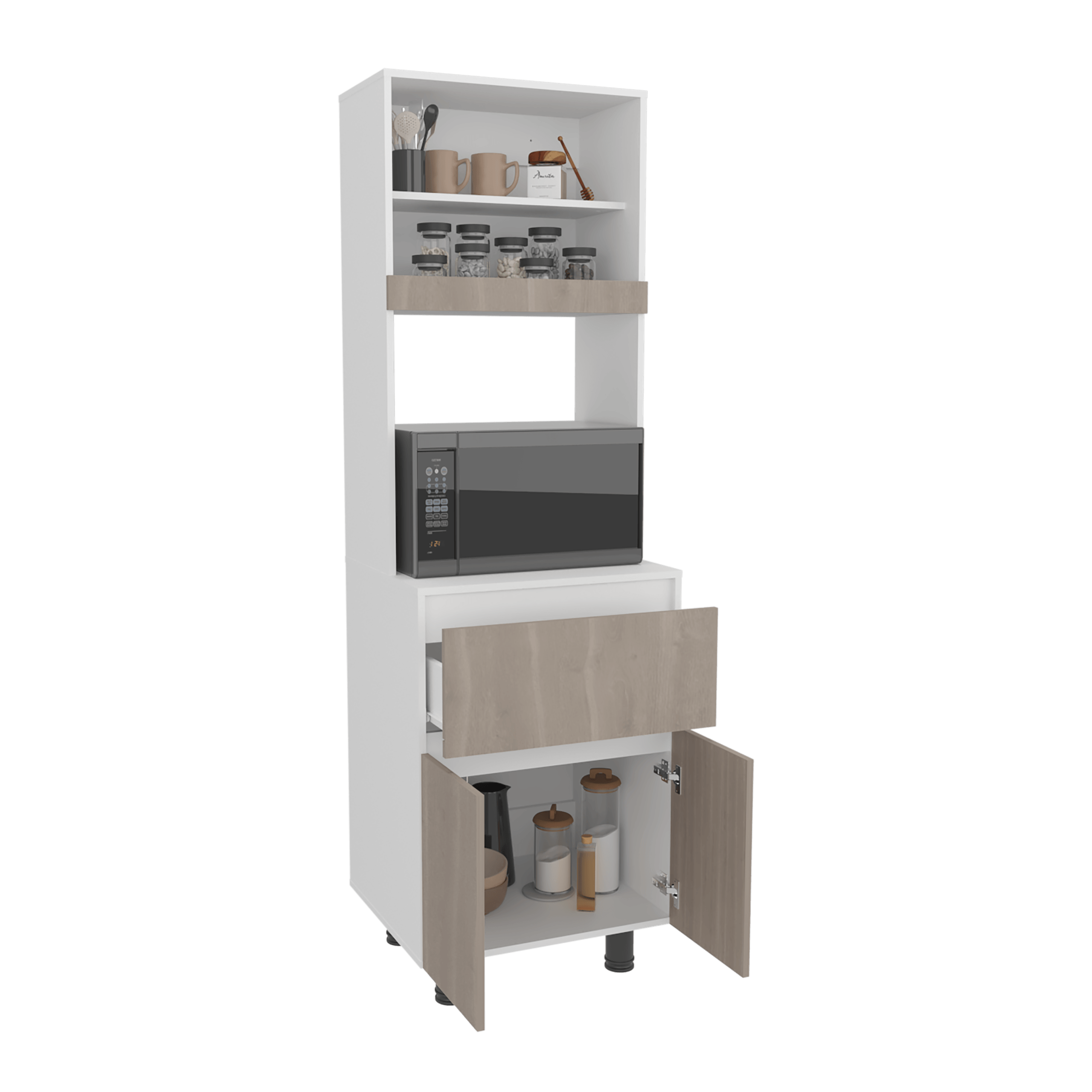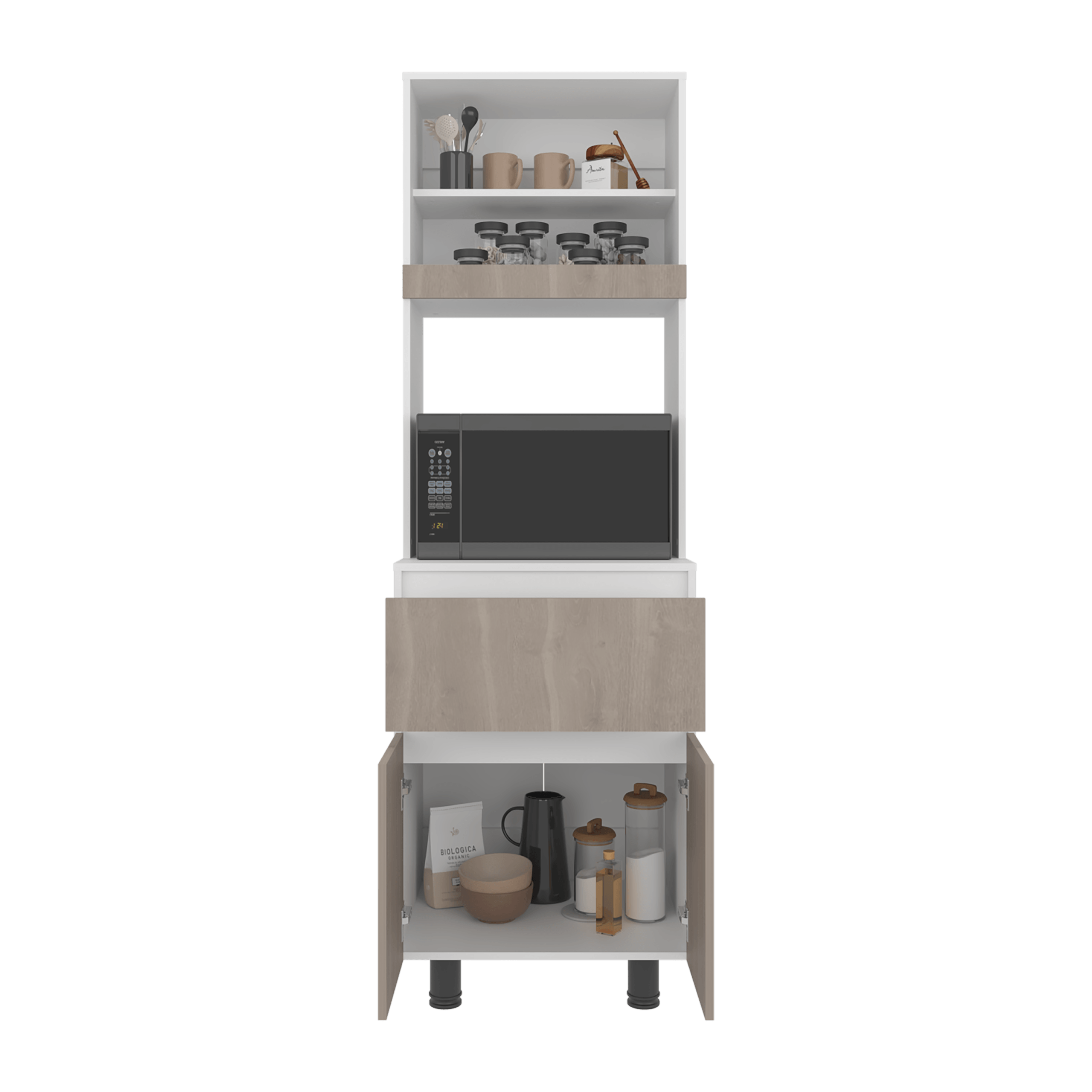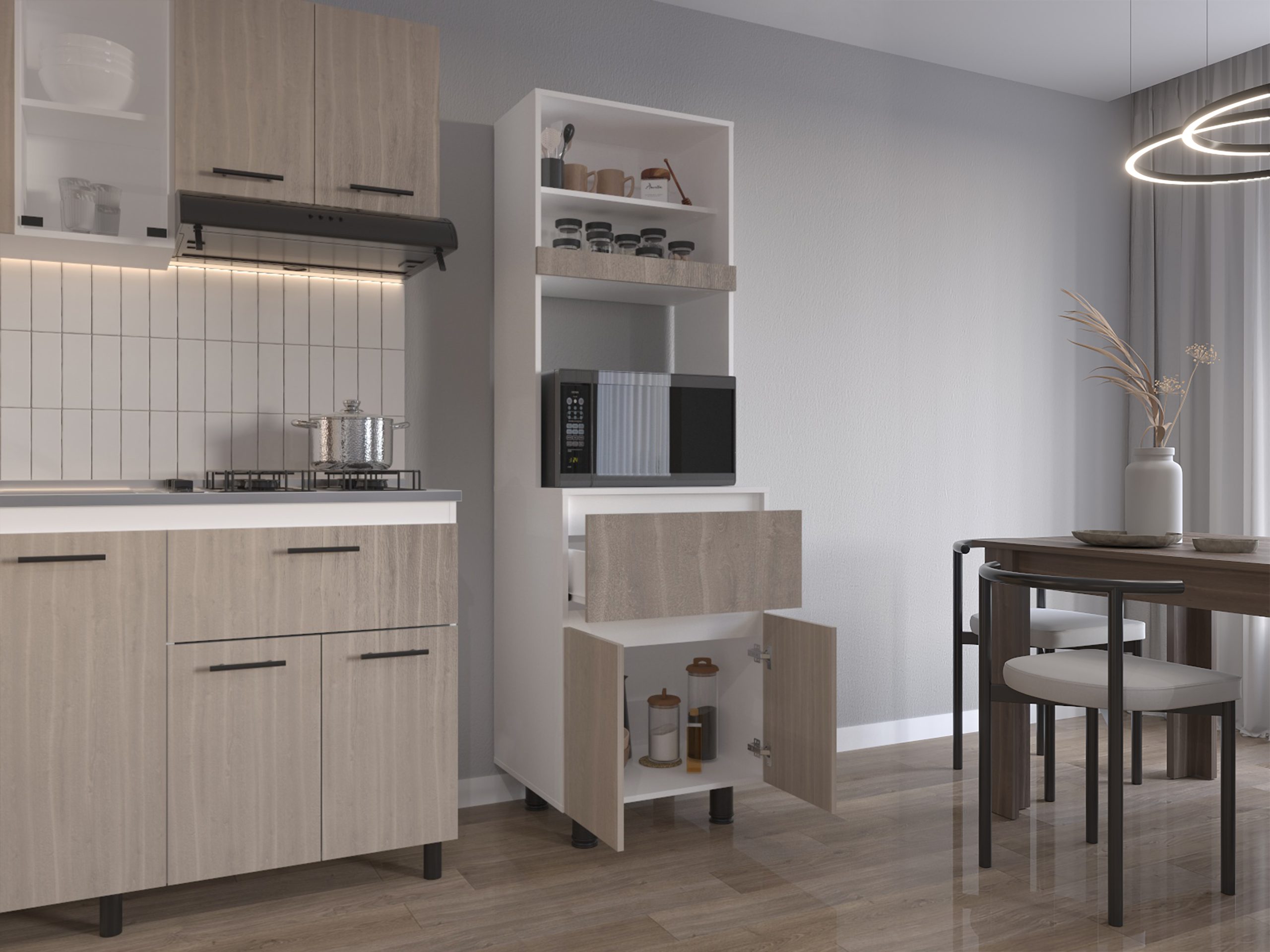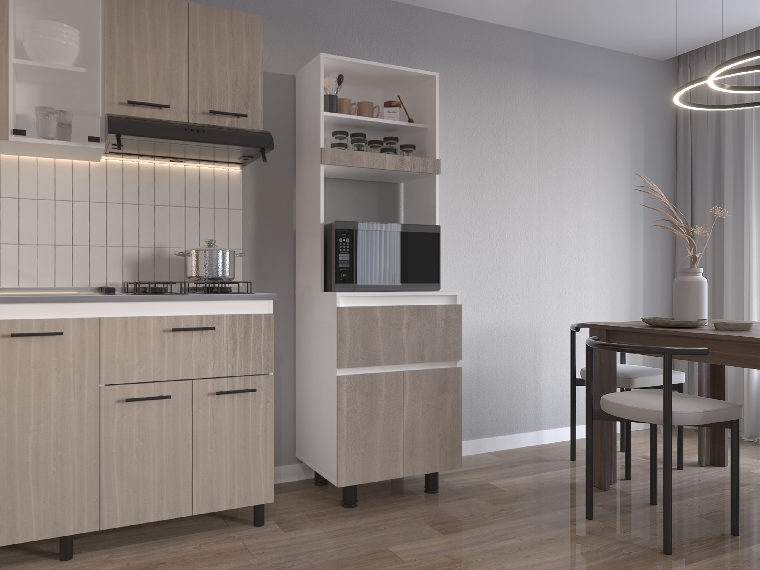 Described as the perfect mix of functionality, elegance, and superb design. With a two-level countertop, this product has a lot of features for your convenience. One side features two cabinets that will provide you with a ton of storage space with its two interior shelves for larger items, whilst the other side is perfect for the placement of bar stools for additional seating in your kitchen.