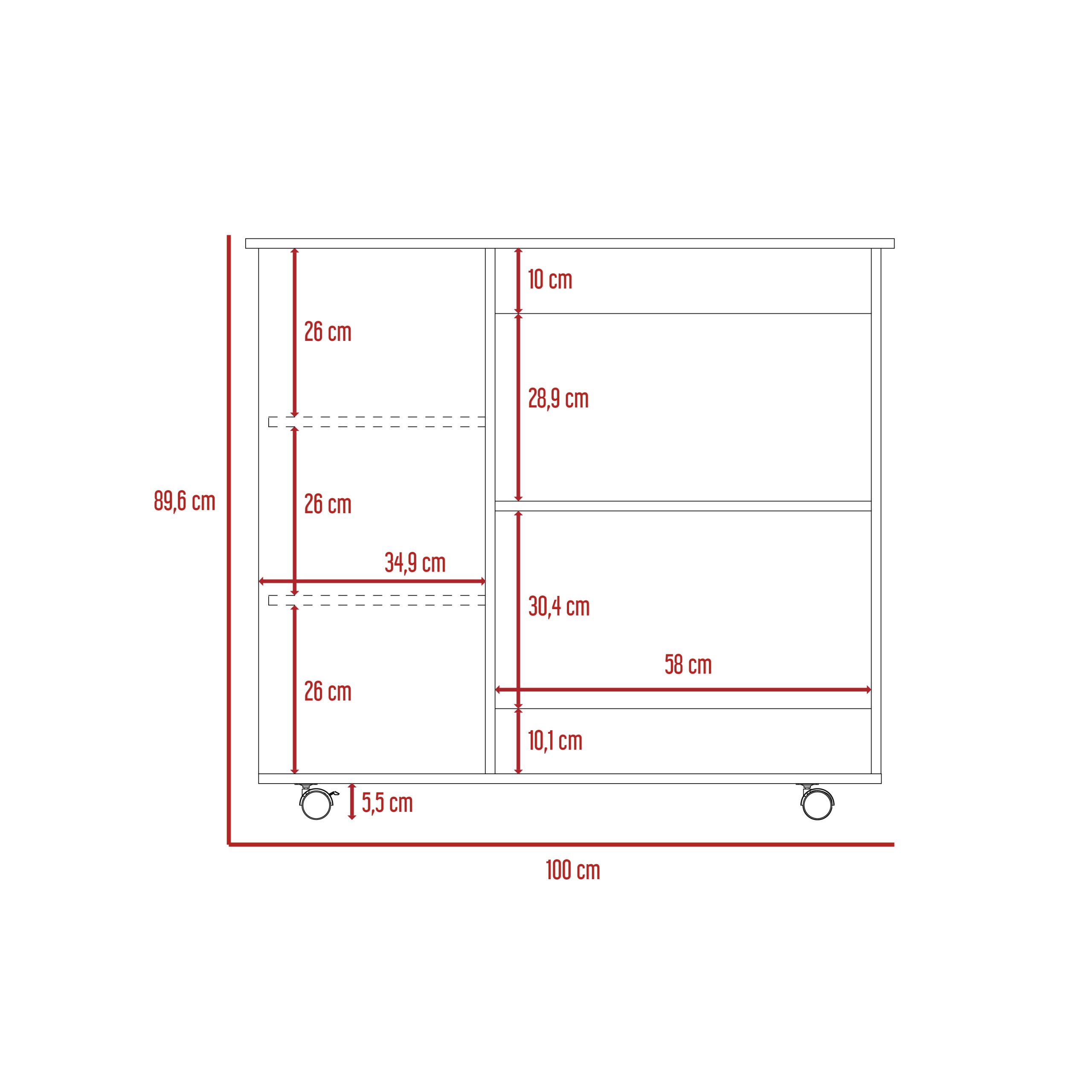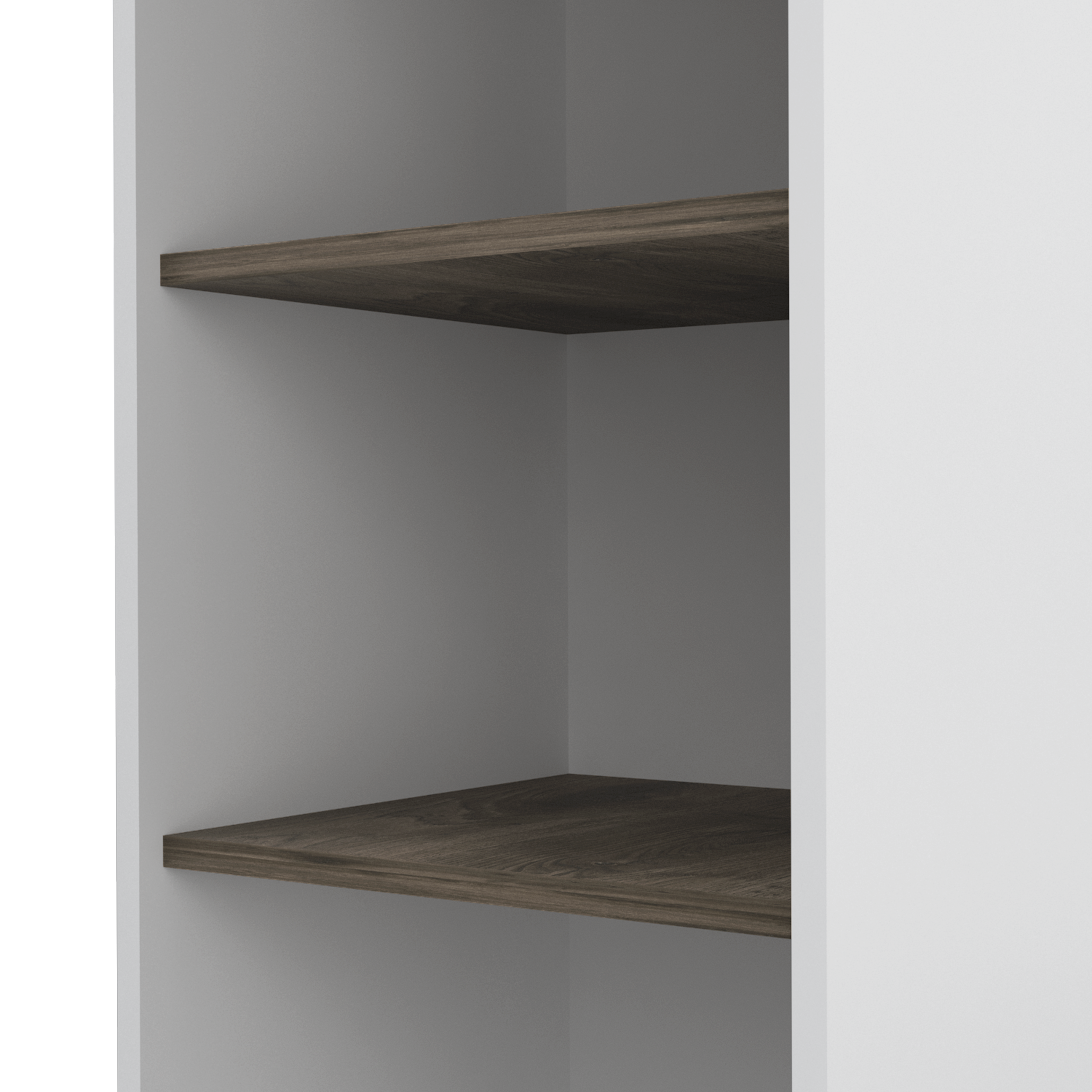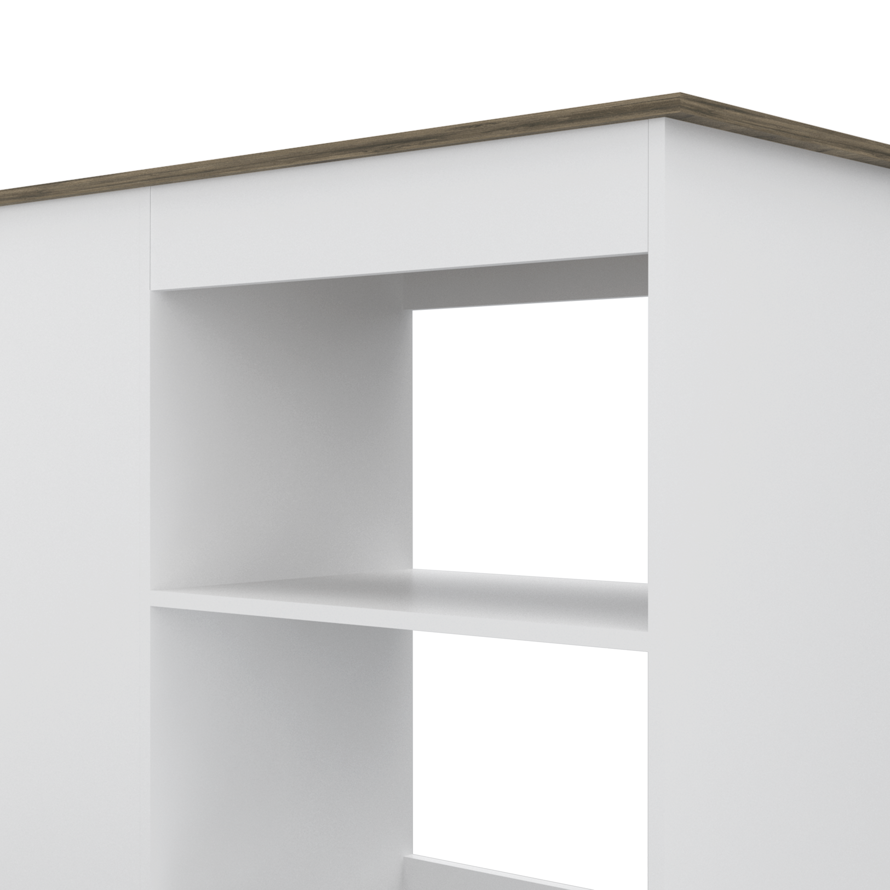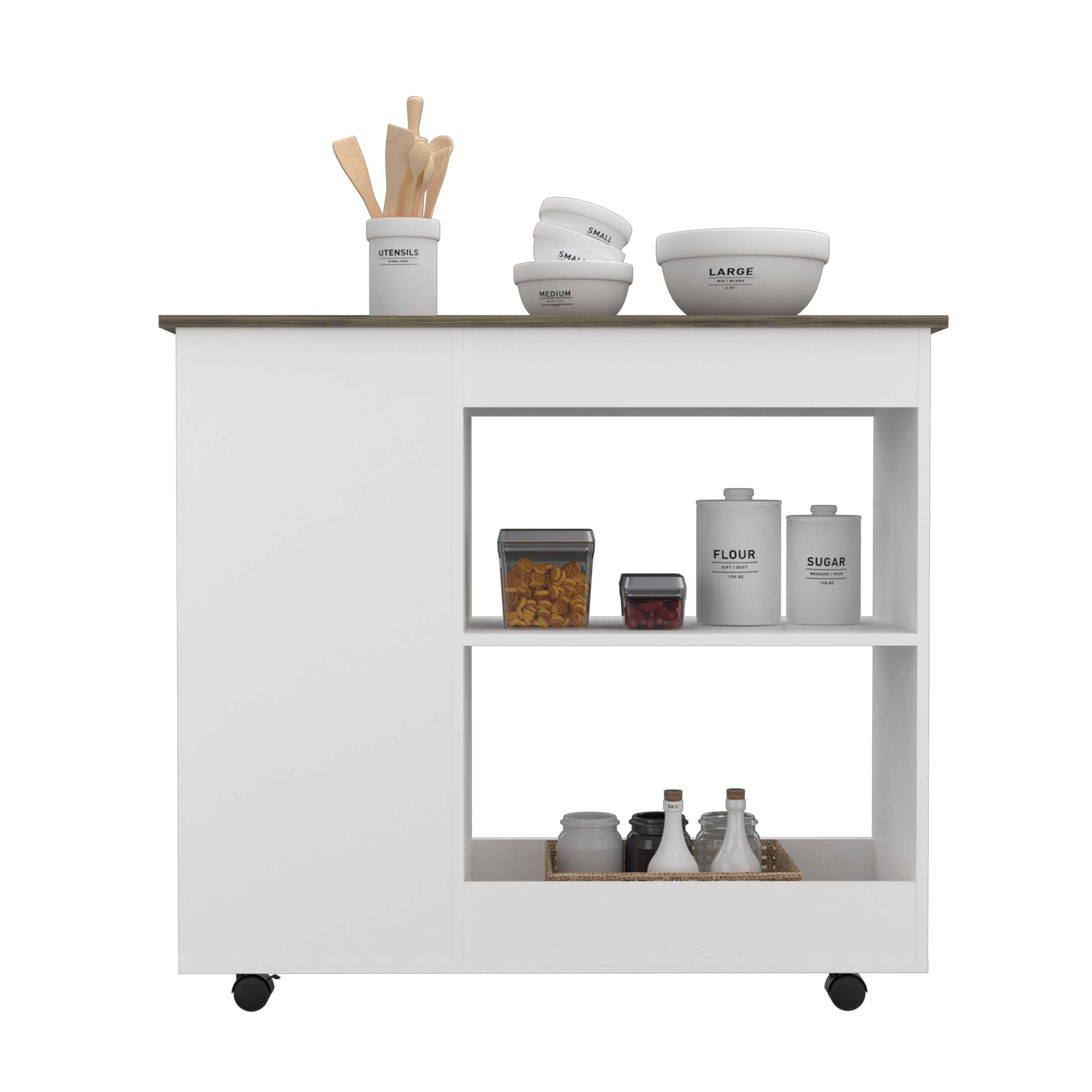 The two large shelves (11,3” H x 11,9” H X 22,8” W X 15.7” D) provide plenty of room to store your utensils, while the three shelves( 35,2” H X 10,2” H each one, 13,7”W) offer a great place to display your favorite decorative items. With elegant White-Dark Brown finish.