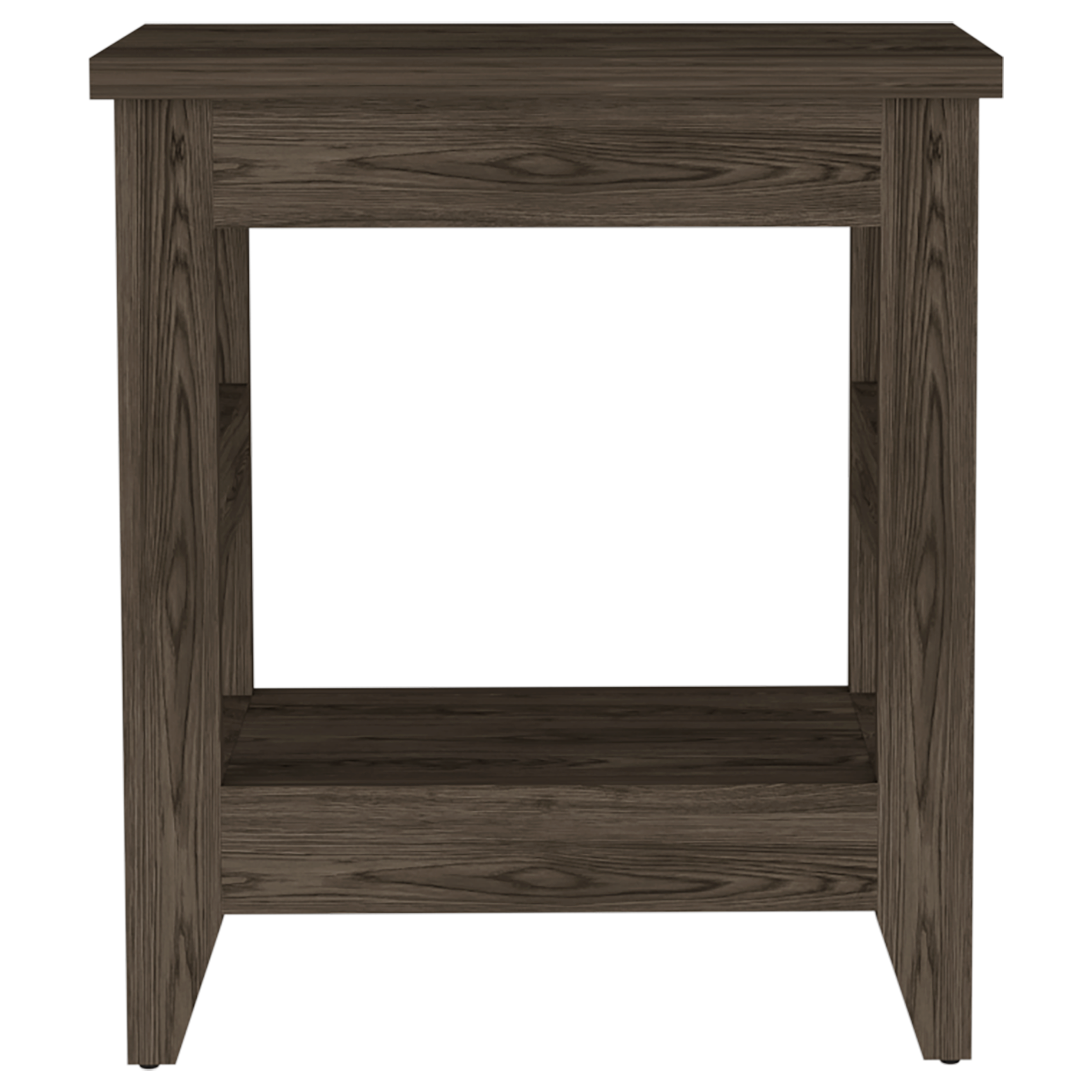 Extra shelf at the bottom for additional display or storage space. Designed with elegant dark walnut manufactured wood finish.