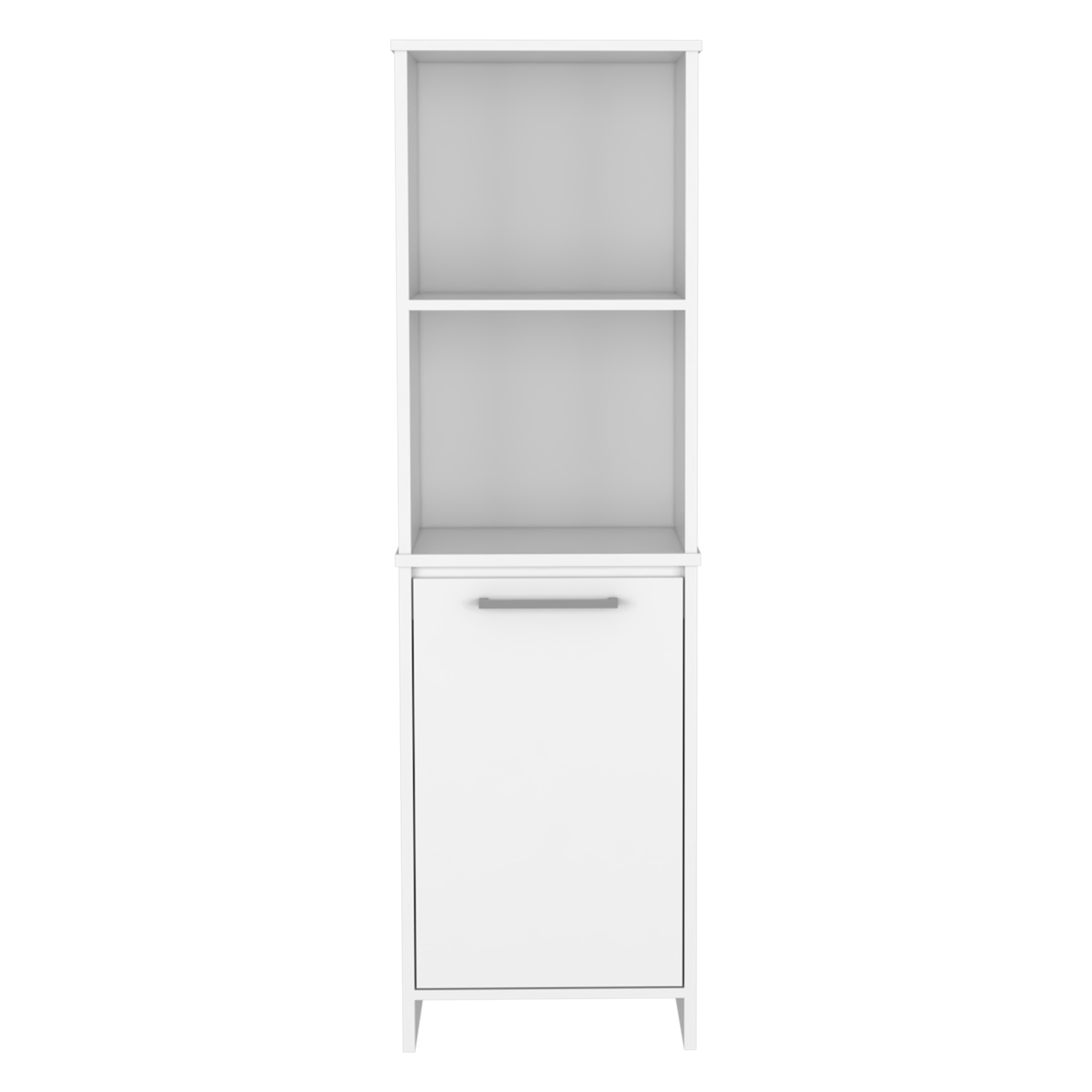 It features two open shelves on the top, you will have enough storage space to out things that you don’t know where to store, and one big cabinet with two inside shelves you won’t have to worry about space anymore, Metal Hardware and Hinges with soft close system.